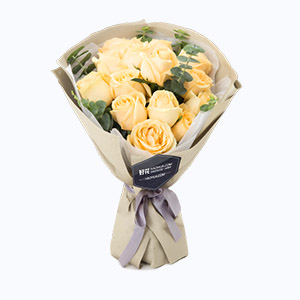 Full love濃情鮮花系列19枝香檳玫瑰+尤加利葉