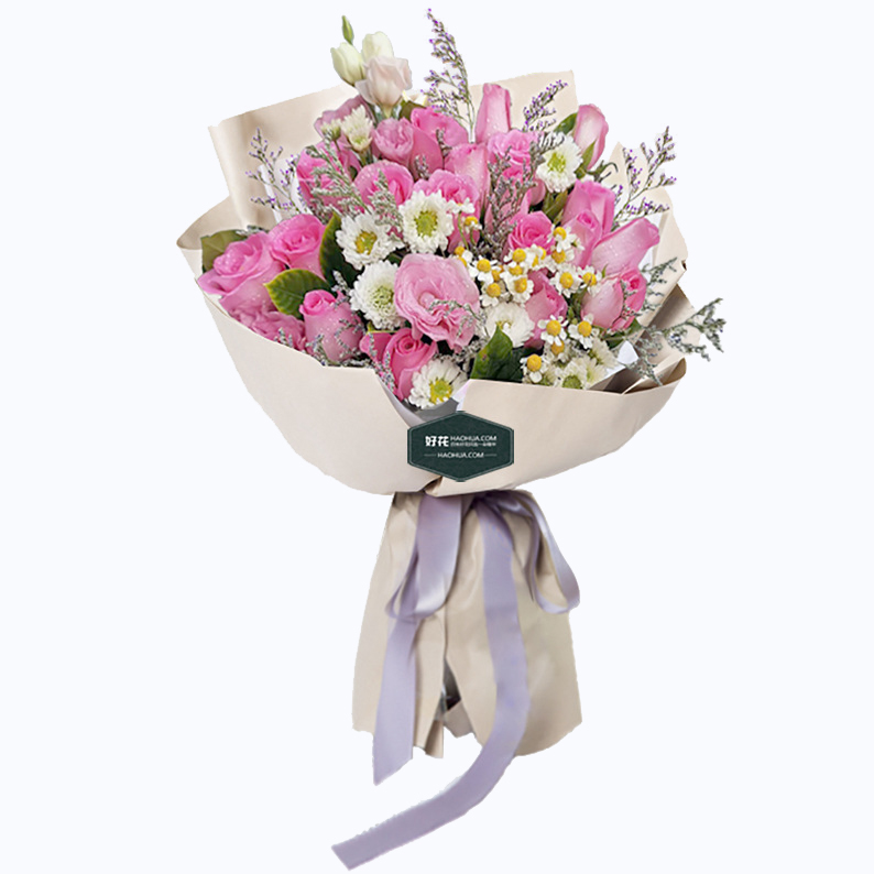 Cherish珍愛鮮花系列9枝粉玫瑰+梔子葉